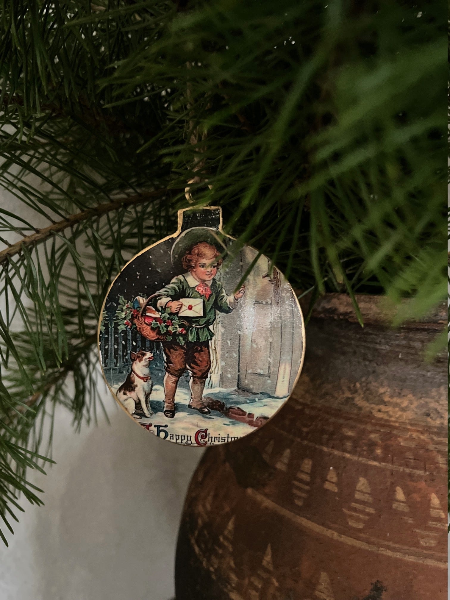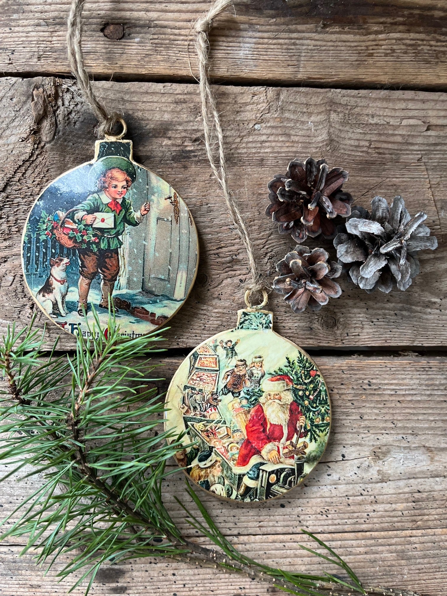 Nostalgiska runda emaljhängen med julmotiv. Häng dem i tallriset, granen eller dekorera dukningen. Säljs i set om 2 med 2 olika motiv enligt bilderna.
