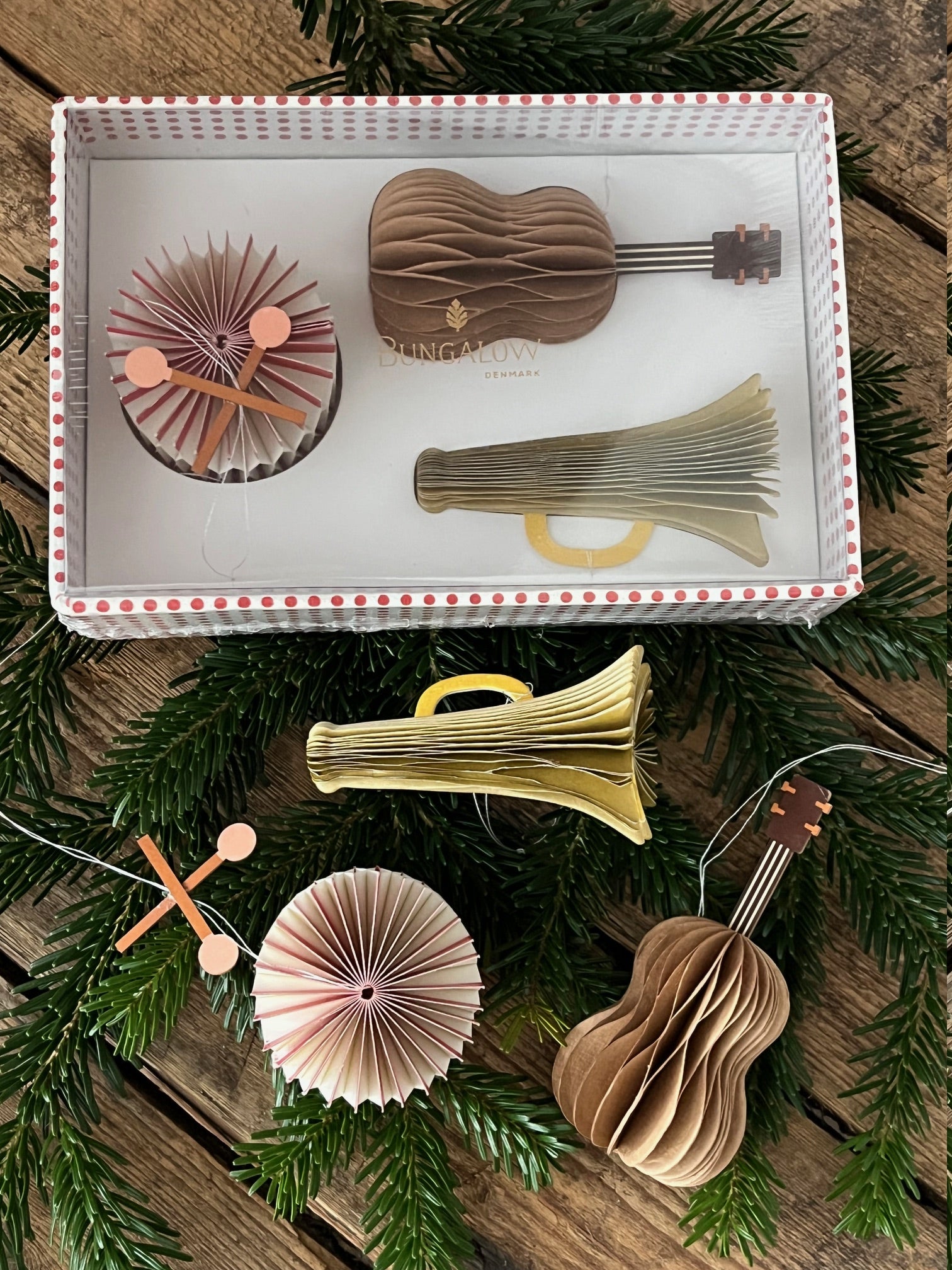 Honeycombs-Instrument i set om 3 st. En gitarr, en trumpet och en trumma. Så dekorativa att pynta tex granen med. Perfekt gåva till musikälskaren. Kommer i fin presentförpackning. Lika fina året om. (Säljs endast i set om 3 st)
