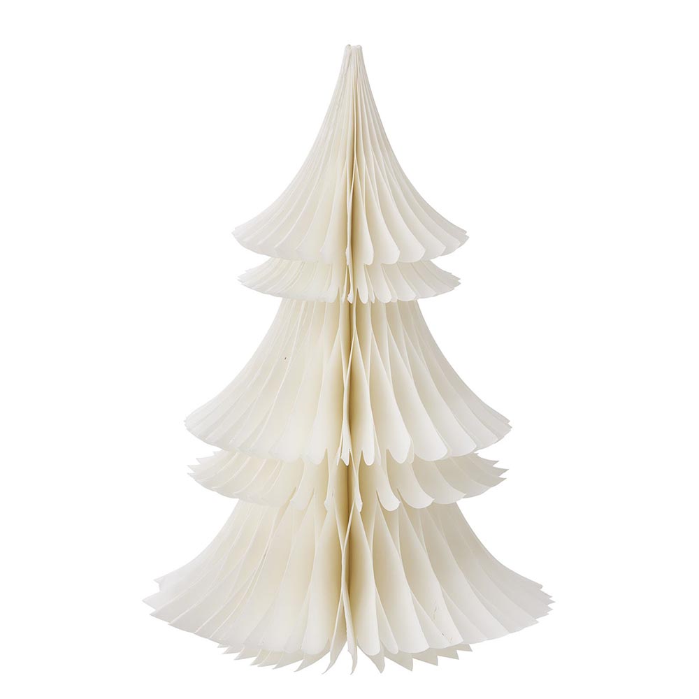 Dekorativ pappersgran som kommer i en snygg slät förpackning.