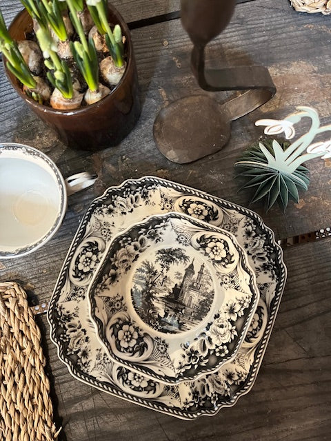 Den vackra 1700-talsdesignen kännetecknas av detaljerade landskap och romantiska motiv i en enda färg. Estelle förenar historia och elegans med en modern twist.