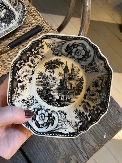 En elegant skål inspirerad av 1700-talets Frankrike och Toile de Jouy. Ett trendigt måste i varje hem. Finns även i rött.