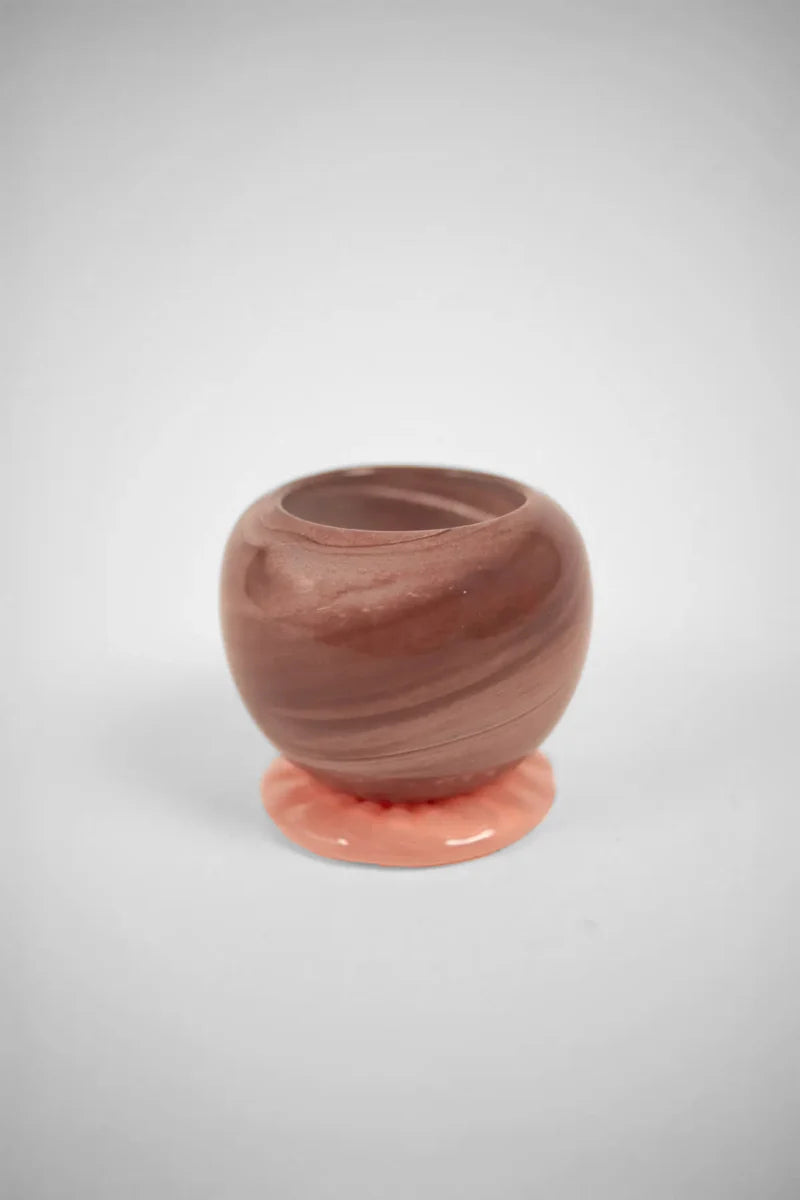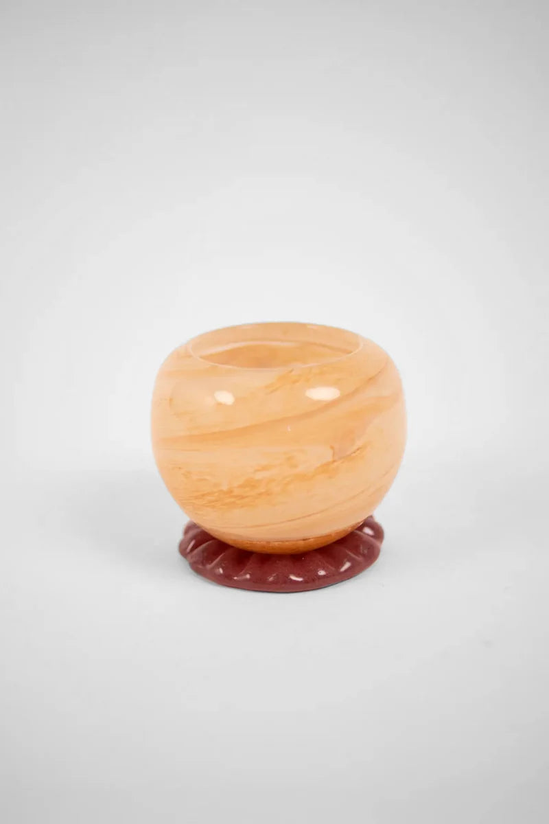 Handgjorda ljuslyktor med ett mjukt, vackert uttryck och en vågig fot. Alla lyktor är unika och variationer kan förekomma. Finns i tre olika färger taupe, brun och persika. Lika fina var för sig eller i en mix med varandra och andra ljuslyktor.