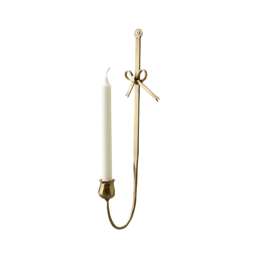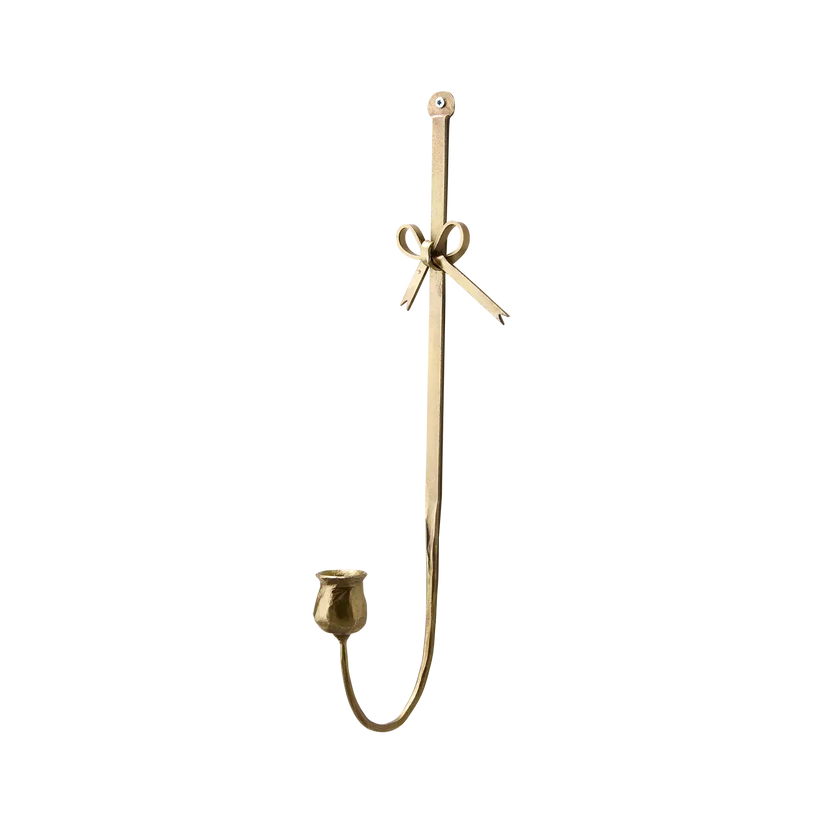 Väggljushållare i mässingsfärgad finish. Handgjord inredningsdetalj som kombinerar elegans med skandinavisk enkelhet. Den varma tonen i metallen skapar ett mjukt sken när ljuset reflekteras mot väggen och ger en stämningsfull känsla i allt från hall till sovrum. Ljushållaren är anpassad för kronljus och är tillverkad i järn med en smäcker form som smälter in i både klassisk och modern miljö. Ett tidlöst val för dig som vill addera ett dekorativt och funktionellt inslag till ditt hem.
