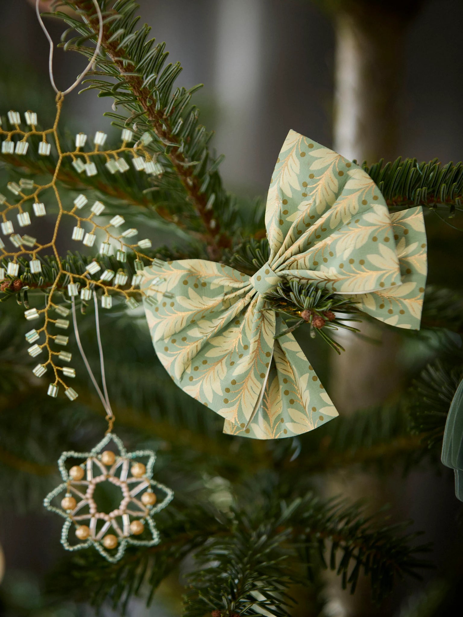 Dessa handgjorda juldekorationer ger granen en tidlöst elegant känsla med sin klassiska rosettform. Varje rosett är tillverkad av bomullspapper med fin kvalitet och en tydlig, taktil struktur. En liten ståltråd på baksidan gör dem enkla att fästa på grenar, paket, kransar och mer – en sofistikerad detalj som lyfter hela juldekorationen. (Lika fina året om)