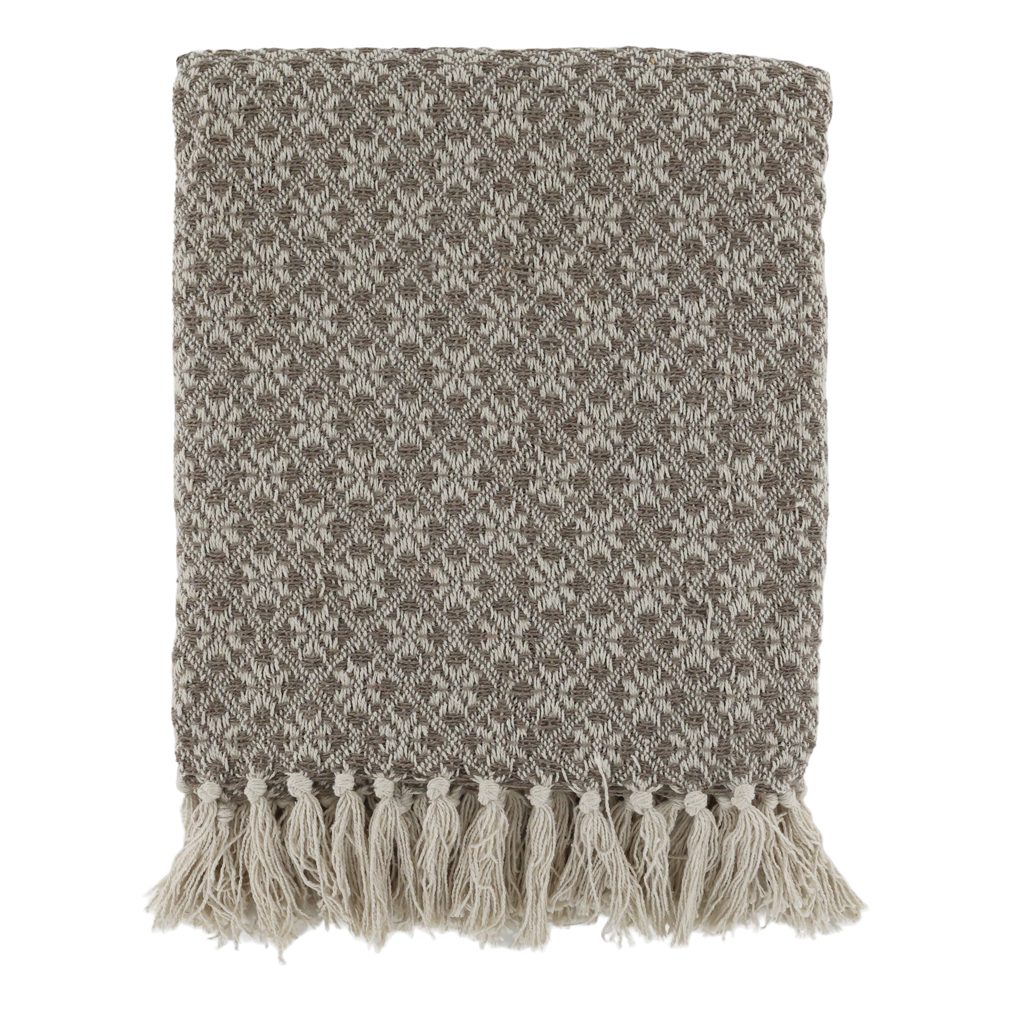Handvävd pläd med fransar av överskottsgarn i 100% bomull.